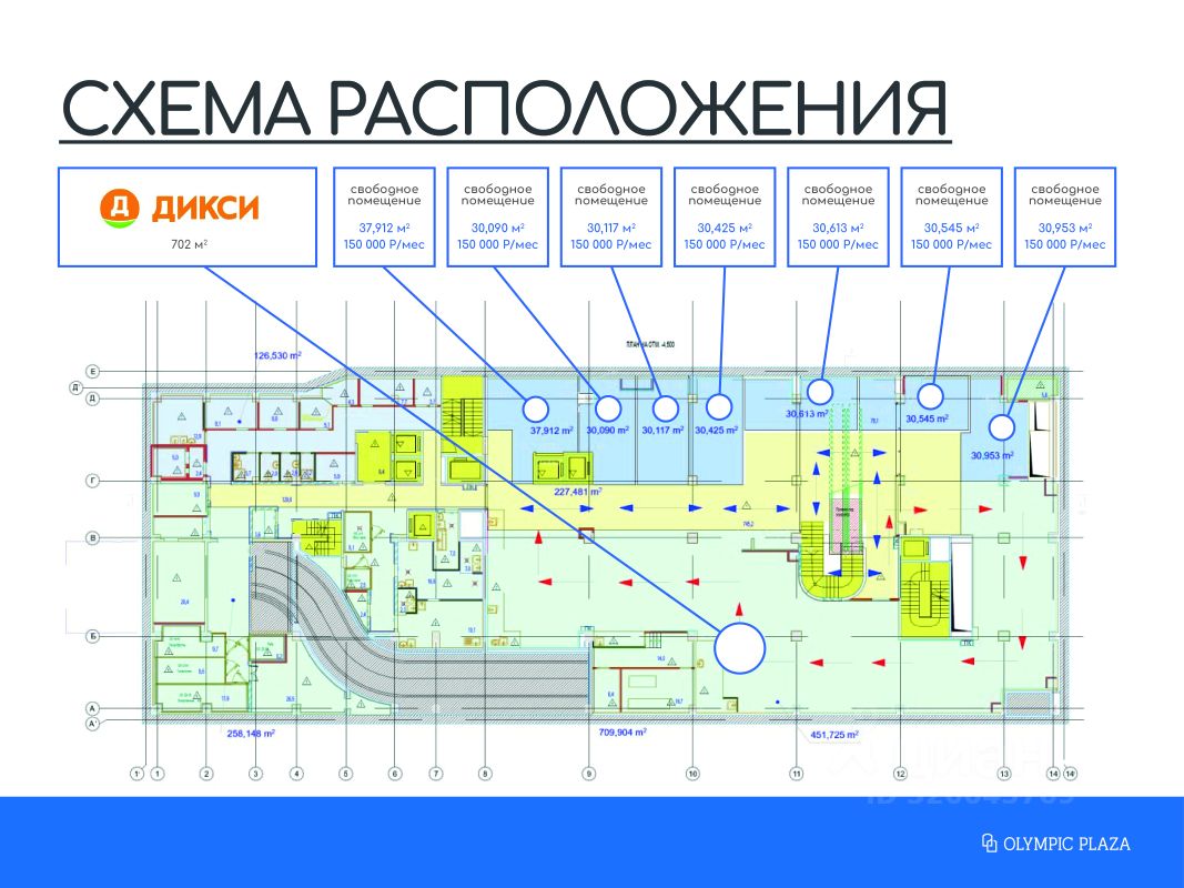 СОБСТВЕННИК. Коммерческий отдел Торгово-офисного центра Олимпик Плаза 1 предлагает в аренду торговое помещение общей площадью 60 кв. м, расположенное на -1-м этаже комплекса. ТОЦ Олимпик Плаза обладает прекрасной транспортной доступностью - станции метро Проспект Мира (кольцевая и радиальная) находится в 1 минуте ходьбы, есть выезд на Проспект Мира, в непосредственной близости проходят ТТК и Садовое кольцо. В находящемся рядом ТОЦ Олимпик Плаза I расположены магазины, супермаркет, ресторан. Предоставляются услуги клининга и техническая поддержка. Получить дополнительную информацию и договорится о показе можно по телефонам коммерческого отдела.