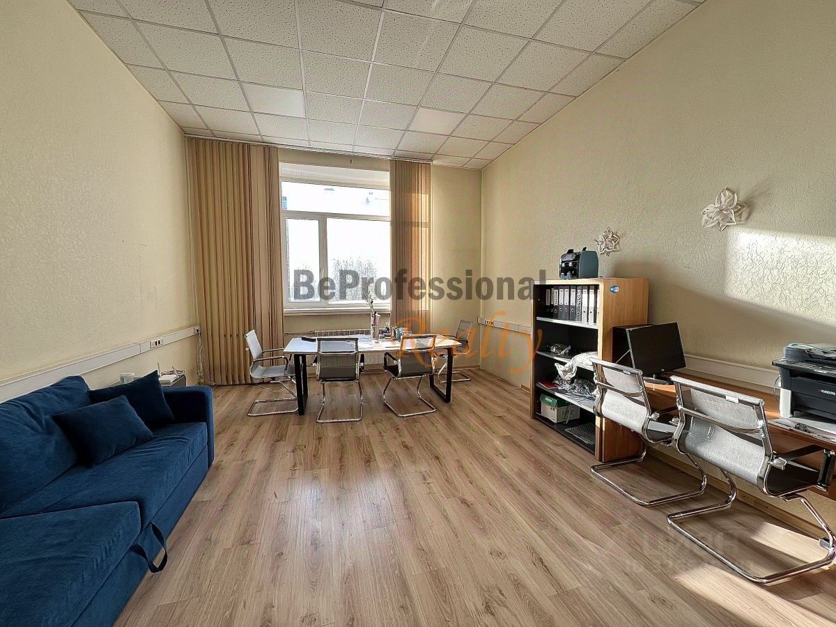 Офис, площадью 26 кв. м. располагается на 2-м этаже, укомплектован мебелью: два стола с комплектом очистных стульев, шкаф и диван, санузлы на этаже. Выполнен свежий ремонт, высокие потолки.
