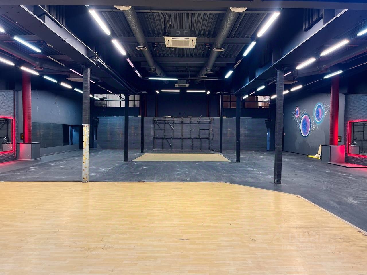Здание находится на охраняемой территории, есть парковка. В помещении отдельный вход, зона ресепшен, большой зал, вип-зона с панорамным остеклением, две раздевалки с душевыми, подсобные помещения.