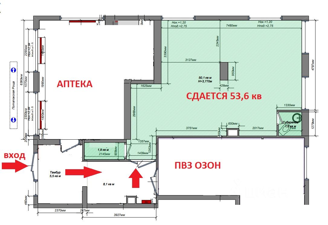 Сдается помещение площадью 53,6 кв.м. (смотрите план и фото). Вход из тамбура совместно с аптекой и пвз озон. В арендную плату все включено. Рассмотрим все предложения, кроме общепита. Звонки принимаются в рабочие дни с пн-пт с 9.15 до 18.00.
