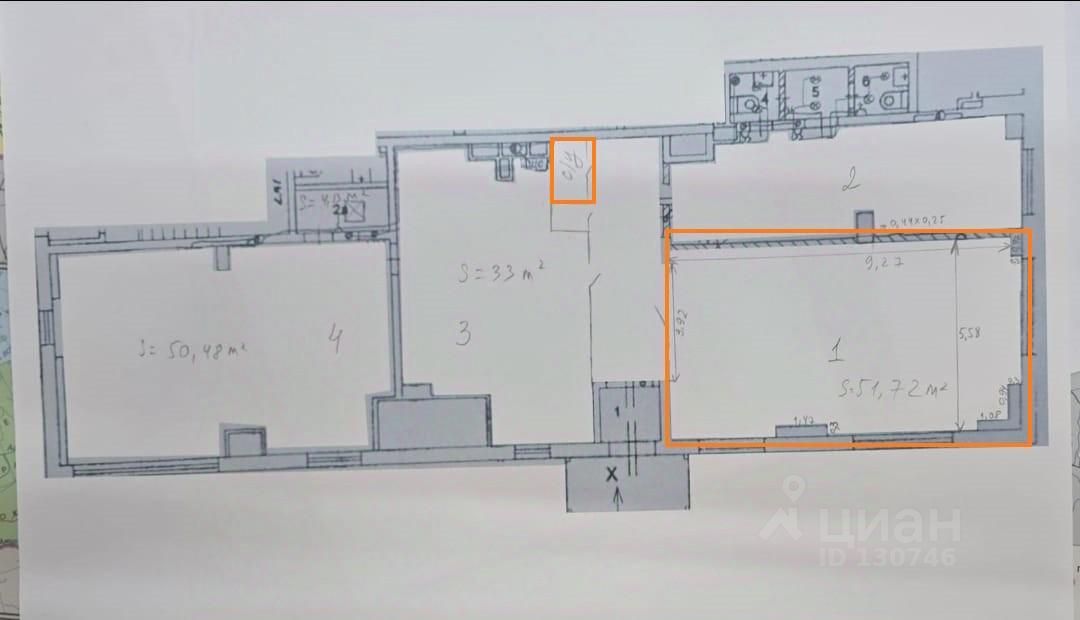 Предлагается помещение обозначенное на плане под номером 1.