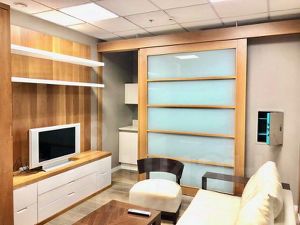 Описание помещения: Представительский офисный блок. Кабинетная планировка. ВИП-зона для руководства с комнатой отдыха, душевой и санузлом. Оборудованная кухня в блоке. Офис рассчитан на 17-18 сотрудников.