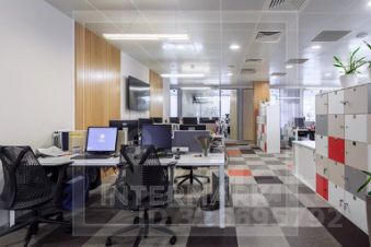 Внутреннее пространство офиса имеет смешанную планировку зону ресепшн, комфортные кабинеты, большой open space, четыре презентабельные переговорные комнаты, серверную, собственную кухню-столовую и санузел. Офис занимает весь 4-й этаж. Текущая планировка позволяет комфортно рассадить до 72 сотрудников. Доступ в офис осуществляется на лифте по электронному пропуску.