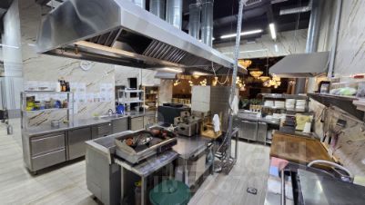 Оборудование включено: Холодильники, печи, рабочие столы и эксклюзивные позиции — мангал и тандыр.