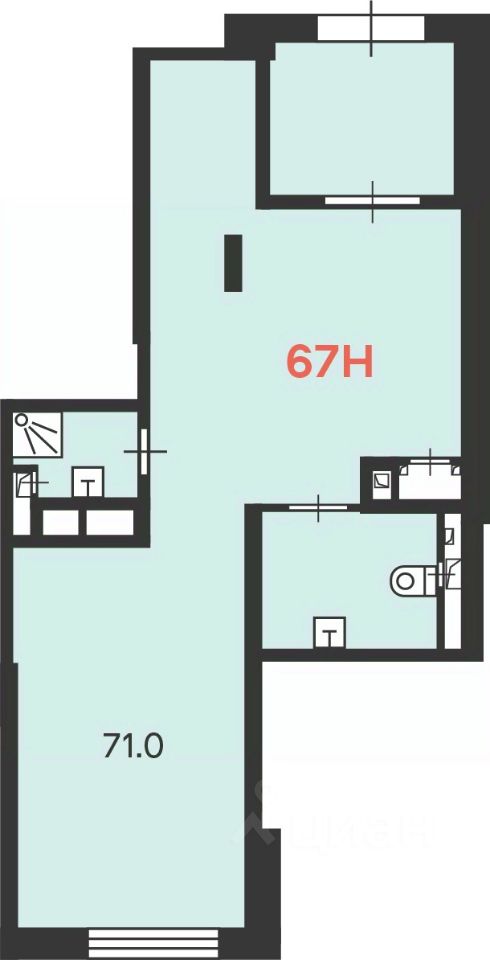 71 кв.м, удачная планировка, высокие потолки, все коммуникации.