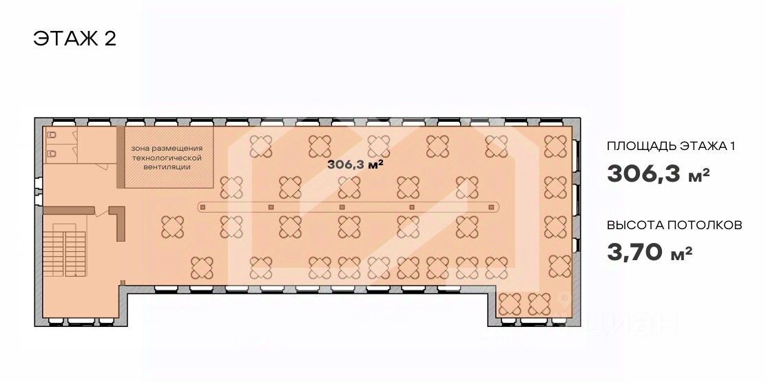 -помещение на двух этажах передается без отделки, что позволяет реализовать любой дизайн-проект и идеально подходит для ресторана;