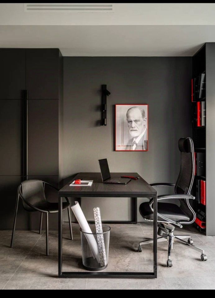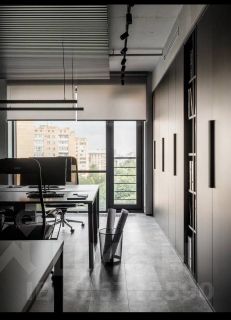 Гибридное пространство по принципу офис-дом! В рабочем апартаменте были спроектированы: входная зона с гардеробом и санузлом, опенспейс для работы инженеров и геодезистов, кабинет для встреч и рабочие места для руководителей, зона отдыха с мини-кухней и обеденными столами. Для отделки пола подобрали практичную кварцвиниловую плитку под бетон, зонирование реализовали с помощью стеклоблоков, стены в переговорной и входной зоне окрашены с дверьми в единый цвет для создания цельного пространства. Вся мебель с зонами хранения спроектирована индивидуально из прочного ЛДСП для долгой и комфортной эксплуатации. В зоне отдыха сотрудников столы выполнены из натурального дерева и шпона, а стены для практичности обшиты широкоформатным керамогранитом под камень. Потолки решили не зашивать и визуально оставить максимально высокими, лишь обозначив рабочую зону металлическими подвесными потолками. В основном коллектив офиса предполагался мужским, поэтому колористическое решение выполнено в сдержанных тонах. Цветовыми акцентами стали плакаты на стенах в проектном отделе, а в кабинете руководителя-переговорной появился смелый алый цвет в декоре. Звоните!