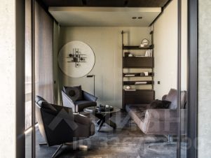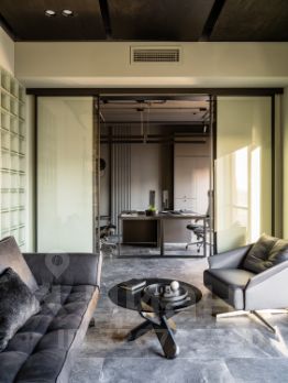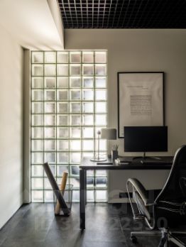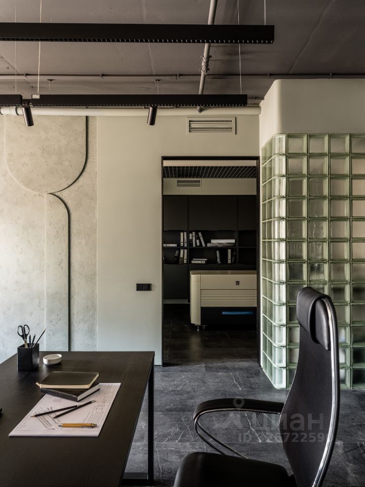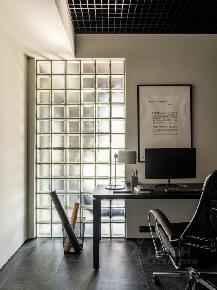 Гибридное пространство по принципу офис-дом! В рабочем апартаменте были спроектированы: входная зона с гардеробом и санузлом, опенспейс для работы инженеров и геодезистов, кабинет для встреч и рабочие места для руководителей, зона отдыха с мини-кухней и обеденными столами. Для отделки пола подобрали практичную кварцвиниловую плитку под бетон, зонирование реализовали с помощью стеклоблоков, стены в переговорной и входной зоне окрашены с дверьми в единый цвет для создания цельного пространства. Вся мебель с зонами хранения спроектирована индивидуально из прочного ЛДСП для долгой и комфортной эксплуатации. В зоне отдыха сотрудников столы выполнены из натурального дерева и шпона, а стены для практичности обшиты широкоформатным керамогранитом под камень. Потолки решили не зашивать и визуально оставить максимально высокими, лишь обозначив рабочую зону металлическими подвесными потолками. В основном коллектив офиса предполагался мужским, поэтому колористическое решение выполнено в сдержанных тонах. Цветовыми акцентами стали плакаты на стенах в проектном отделе, а в кабинете руководителя-переговорной появился смелый алый цвет в декоре. Фото реальные. Звоните!