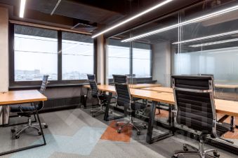 На этаже есть все необходимое: переговорные комнаты (, кухня со встроенной техникой, мягкие зоны для отдыха и общения, скайповые для индивидуальной работы , печатные станции.