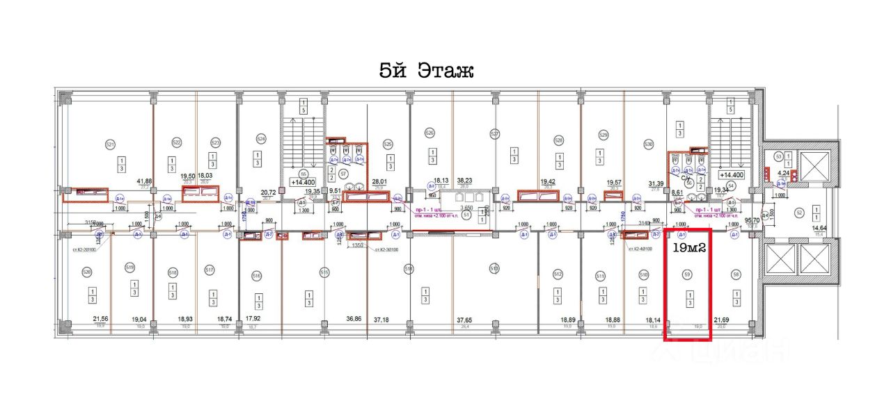 19м2 - 1 кабинет с большим окном, 5й этаж, 51000р,