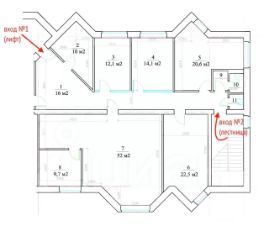 Смешанная планировка: шесть кабинетов, опен спейс, серверная, зона ресепшн, кухня и санузел.