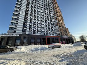 Первая линия домов. Угловое .Хорошо просматривается со стороны улицы и от метро. Смотрит на улицу