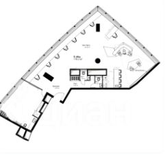 Планировка: Просторный опэн-спэйс, кабинет руководителя, зона ресепшен, гостевой сан/узел, изолированная кухня, сан/узел руководителя.