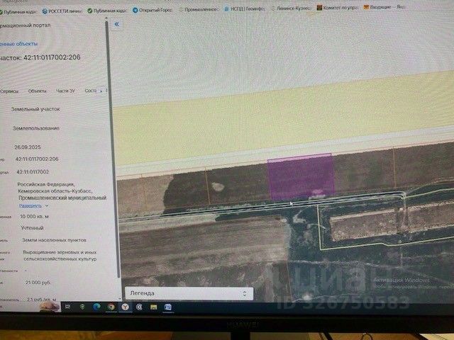 земельный участок с кадастровым номером 42:11:0117002:206, площадью 10 000 +/- 35 кв.м., расположенный по адресу: Российская Федерация, Кемеровская область - Кузбасс, Промышленновский муниципальный округ, пгт. Промышленная, 580 м на северо-восток от ул. Кольцевая, 11. Категория земель: земли населенных пунктов. Разрешенное использование земельного участка: выращивание зерновых и иных сельскохозяйственных культур.