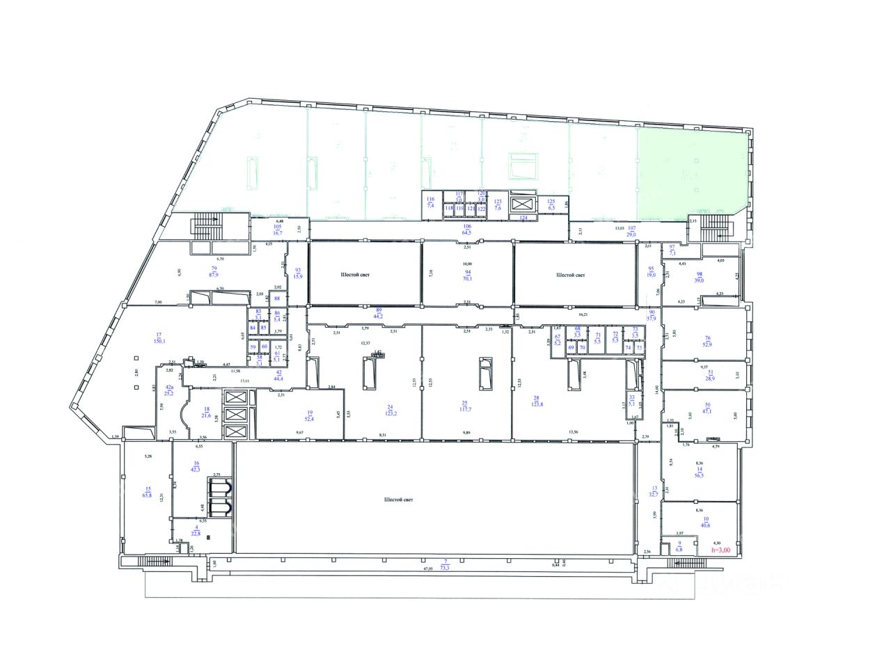 - Размер типового этажа: 4400;