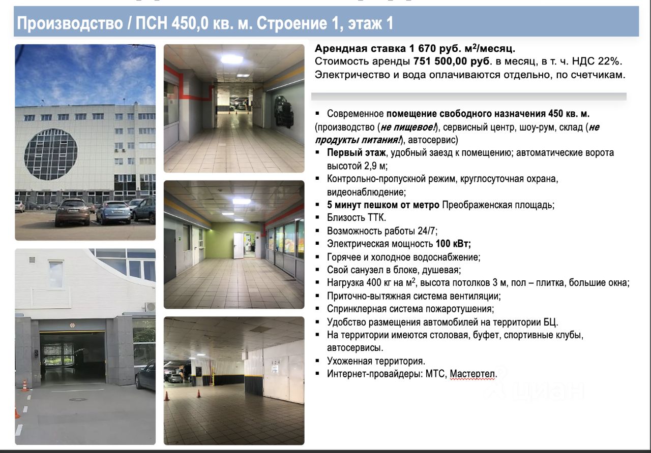 5 минут пешком от метро Преображенская площадь;
