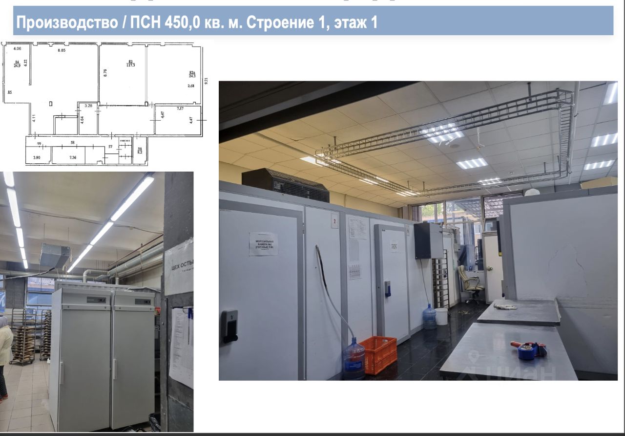 Свой санузел в блоке, душевая;Нагрузка 400 кг на м?, высота потолков 3 м, пол - плитка, большие окна;