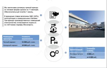 Первый этаж, удобный заезд к помещению; автоматические ворота высотой 2,9 м;Контрольно-пропускной режим, круглосуточная охрана, видеонаблюдение;