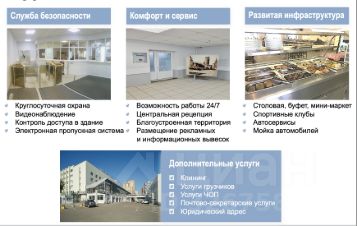 На территории имеются столовая, буфет, спортивные клубы, автосервисы.