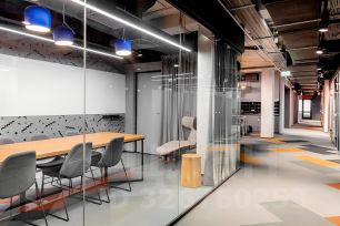 На этаже есть все необходимое: переговорные комнаты (, кухня со встроенной техникой, мягкие зоны для отдыха и общения, скайповые для индивидуальной работы , печатные станции.
