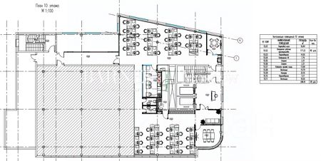 Офис расположен на 10-м этаже. Планировка смешанная.
