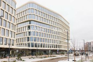 Новый бизнес-центр класса А расположится в районе Кунцево в парковой зоне на западе Москвы. До станции метро Кунцевская всего 2 минуты. Удобный выезд на Рублевское шоссе и Кутузовский проспект. Первый этаж - стилобат, который объединяет два корпуса бизнес-центра, торговые зоны, общий ресепшн. бизнес-центра. Второй этаж Корпуса 2 - фитнес, столовая.