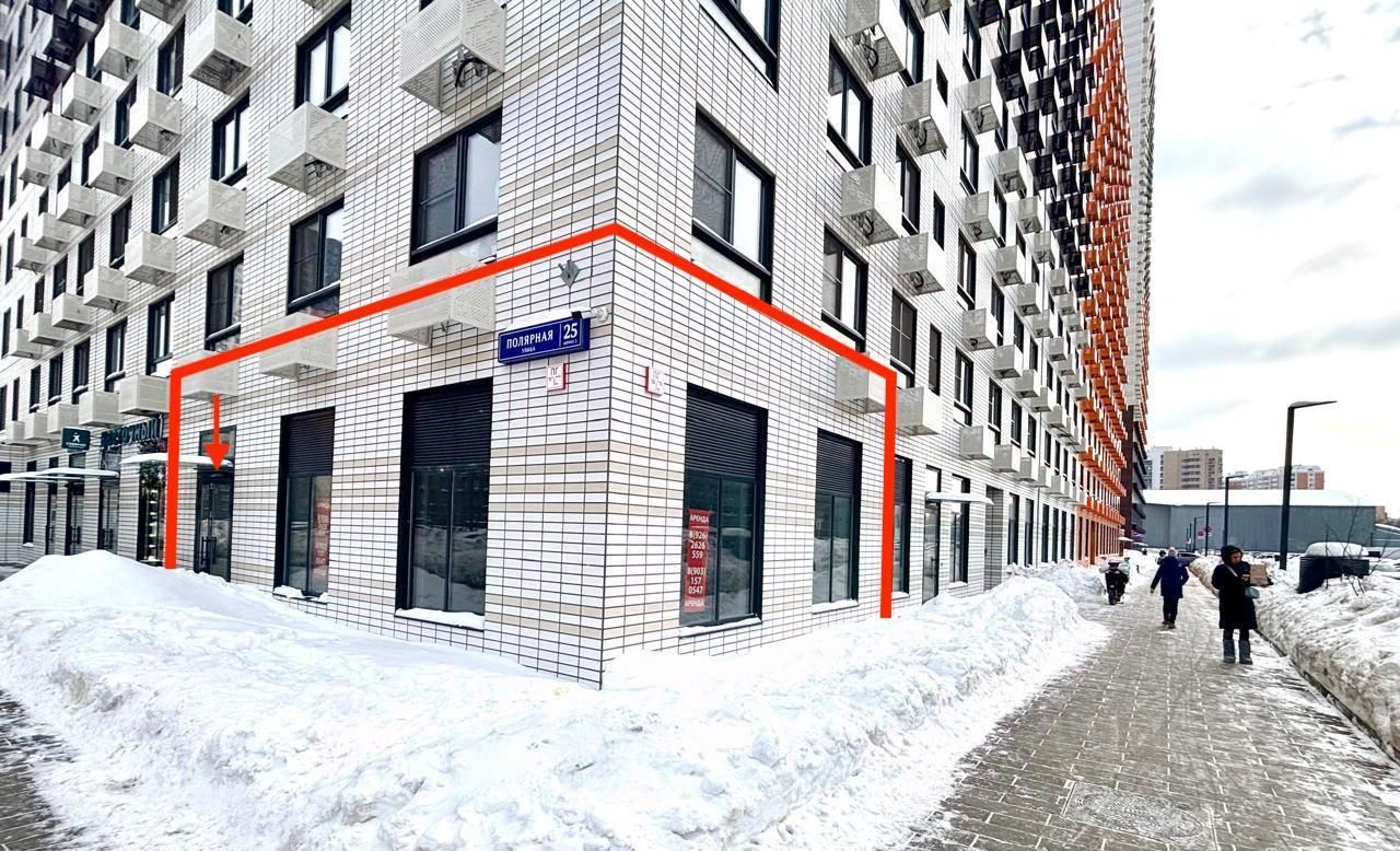 Сдаю в аренду угловое торговое помещение в огромном заселенном ЖК "Полярная 25". в 10 минутах пешком от метро "Медведково" на углу дома на въезде в ЖК.