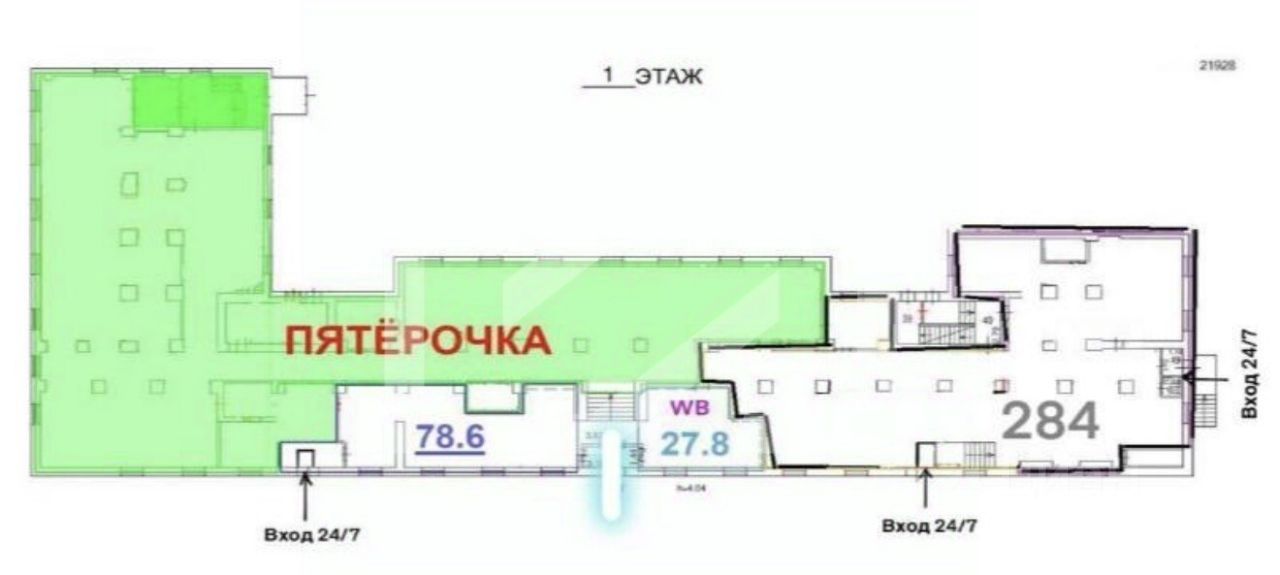 1125922 . Предлагаем помещение свободного назначения формата Street Retail, площадью 78 кв. м., расположенное на первом этаже 5-этажного жилого дома.