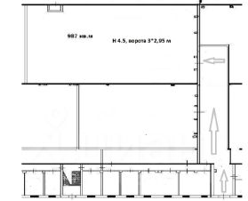 Площадь 1 этажа 987 кв. м. Высота потолка 4,5 метров.