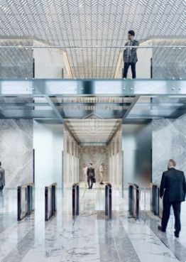 22 высокоскоростных лифта с двухуровневыми кабинами