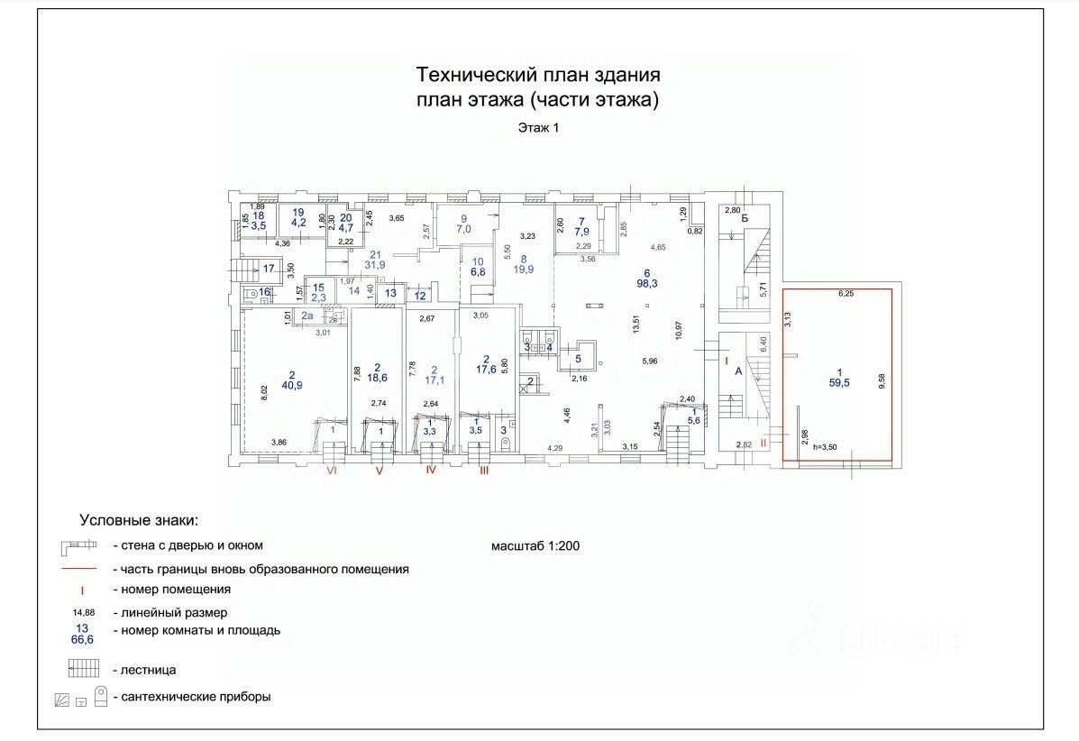 952836-f . Предлагаем помещение свободного назначения, площадью 59.5 кв. м, расположенное на первом этаже 3-этажного административного здания.