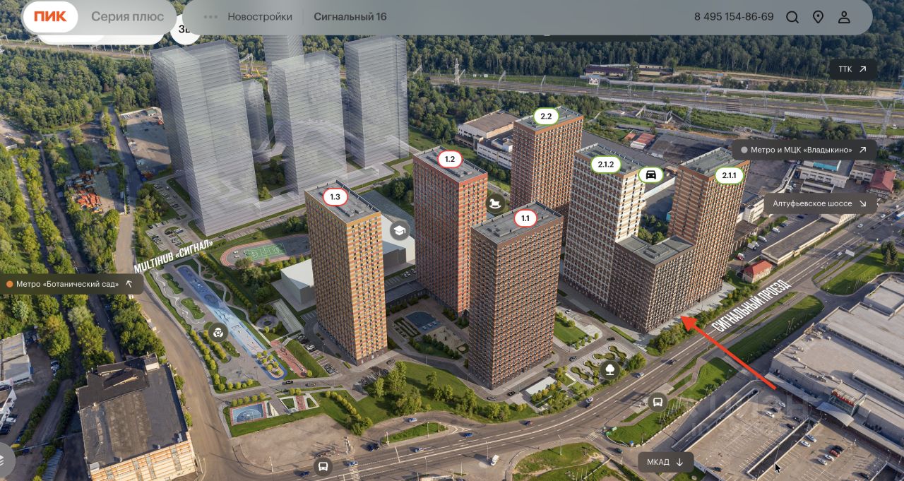 . Москва, СВАО, р-н Отрадное, Сигнальный проезд, к. 2.1, площадью 87,8 кв.м. Помещение на первой линии по дороге от метро Владыкино в жилой комплекс. Въезд в район с МСД для района Отрадное. Напротив торговый центр с "Ашаном" - постоянная точка притяжения. Район в развитии масштабный проект с апартаментами строится напротив, в зоне прямой видимости: гостиничный сервис привлечет дополнительный внешний трафик. Высокая плотность населения: первый этап сдан в 2023 году, корпус 35 этажей на 1248 квартир; второй этап 1072 квартиры, сдача в 4 кв. 2025 года, 3 этап 496 квартир с ключами в октябре 2026 года. Квартиры с полной чистовой отделкой, заселение проходит быстро. Ожидается следующая очередь строительства соотносимых с уже существующими домами объемов. Нет ограничений по получению алкогольной и медицинских лицензий.