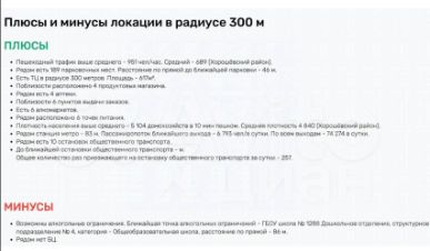 Интенсивный пешеходный (около 18 000 человек в день) и автомобильный (около 43 000 автомобилей в день) трафик.