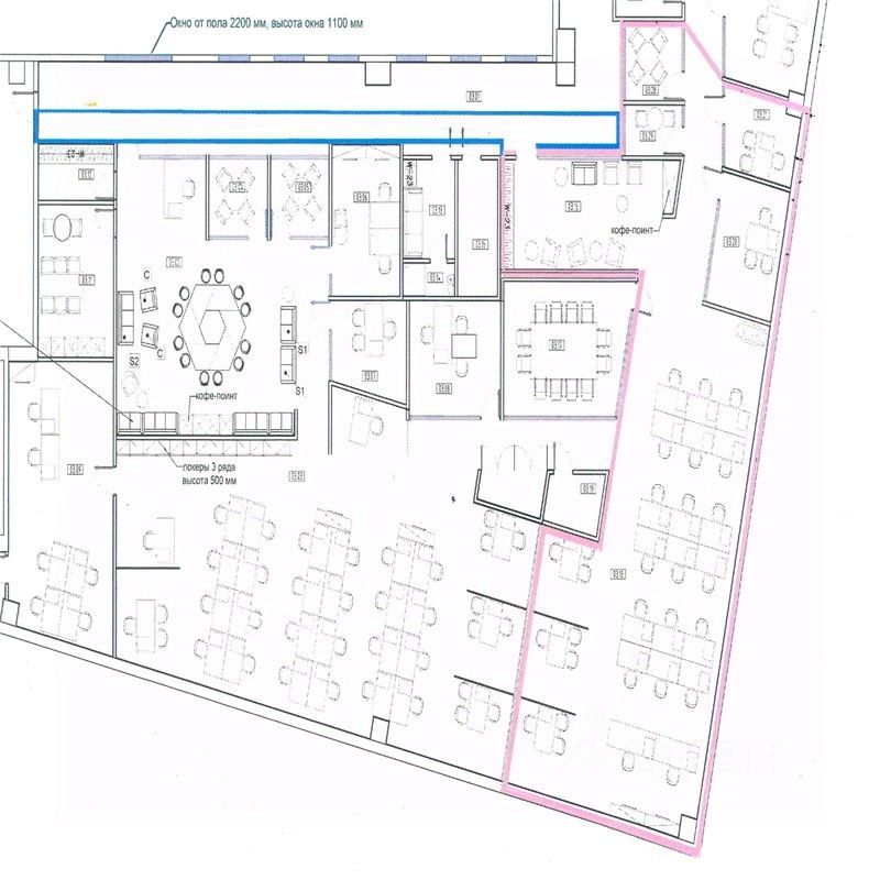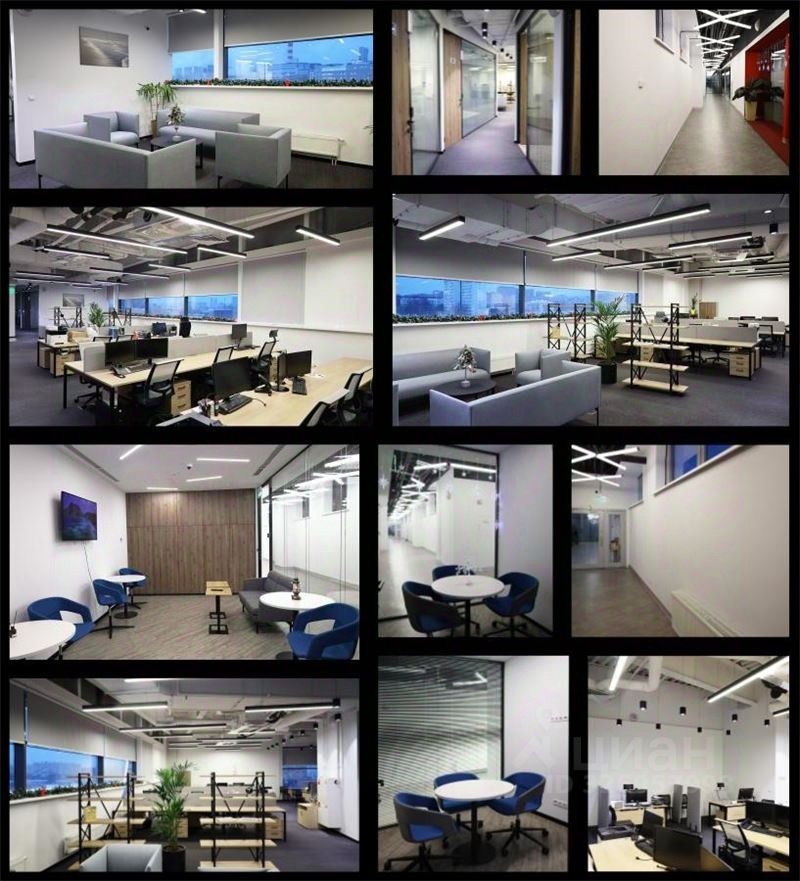 В помещении присутствует зона ресепшн, гардероб, 2 кабинета руководителя, 2 переговорные комнаты, рабочая зона - open spase.