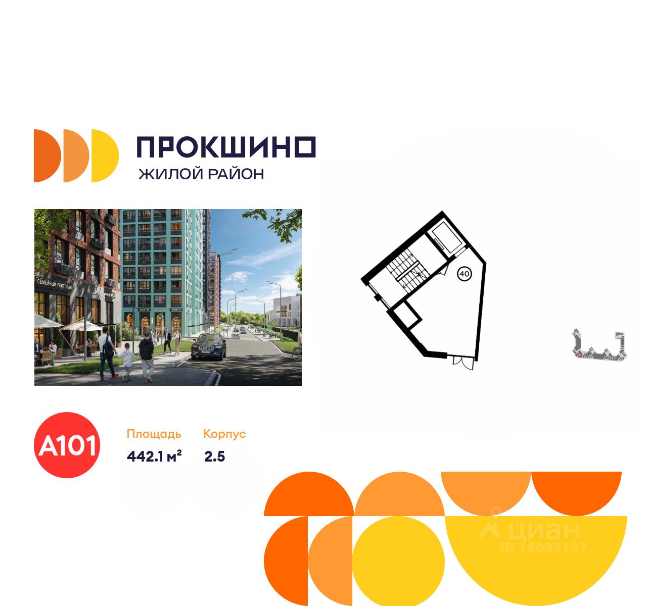 Сдается помещение площадью 442.10. на 2-м этаже ЖК "Прокшино". Трафик 547 человек в день.