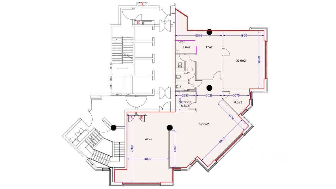 Общая арендуемая площадь: 56 400 м²