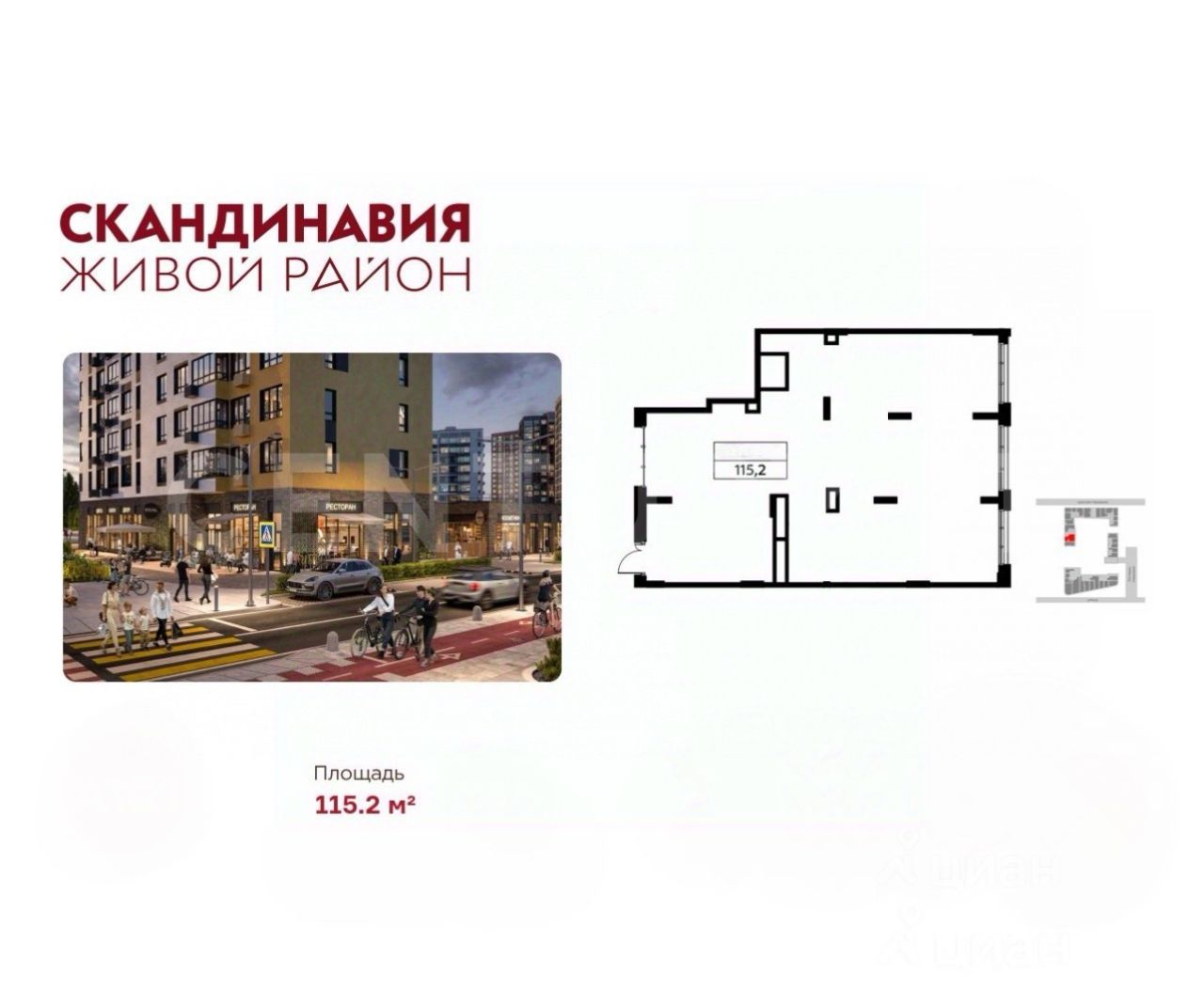 Сдаем помещение с ВИТРАЖНЫМИ ОКНАМИ площадью 115.2 м2 на 1-м этаже в ЖК Скандинавия. Трафик до 900 челок в день.