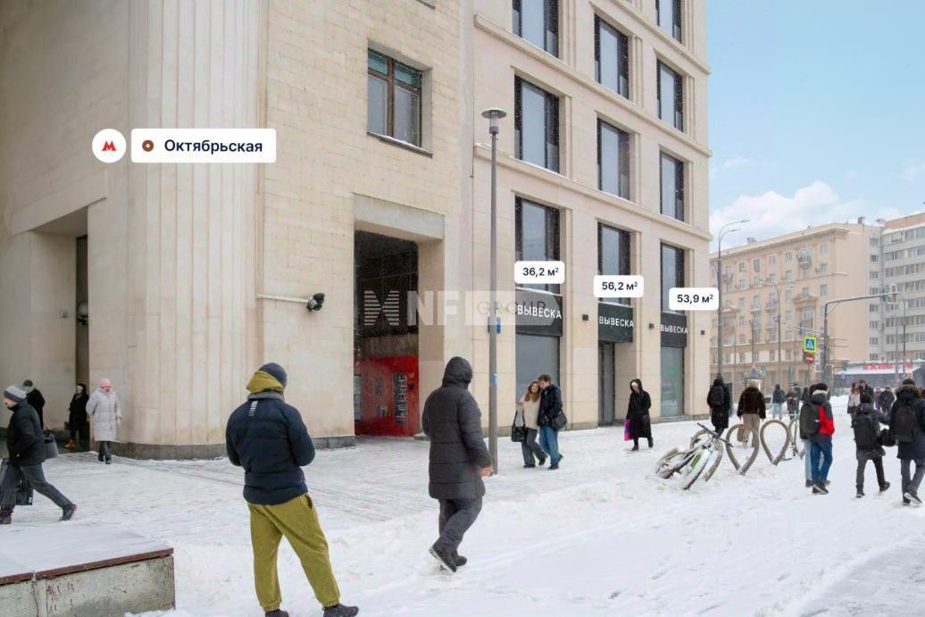 Лот: 38397. Помещение свободного назначения формата Street Retail на Ленинском проспекте, ЦАО Москвы. Шаговая доступность от ст. метро Октябрьская — 1 минута пешком. Отличная пешеходная и транспортная доступность. Высокий рекламный потенциал и возможность размещения вывесок. В окружении находятся жилые комплексы Cult, Созвездие, большое количество бизнес-центров, Национальный исследовательский технологический университет МИСИС, Российская государственная детская библиотека. Прямая видимость от метро. Отлично подойдёт под любой вид деятельности: торговое помещение, магазин, ресторан, кафе, аптека, салон красоты, банк, офис продаж, кофейня и др.