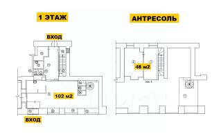 1-й этаж: 102 м2 антресоль: 46 м2