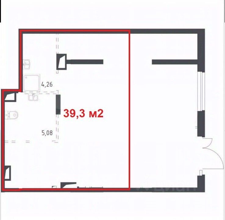• Общая площадь39,3 м²