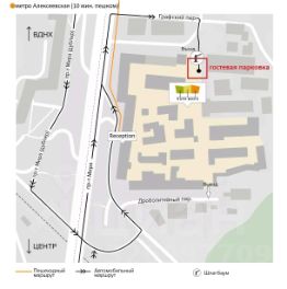 В "Парке Мира" благоустроенная охраняемая территория, офисы, апартаменты, различные сервисы, наземный и подземный платный паркинг. Вход свободный, круглосуточный, время работы 24/7.