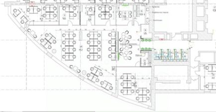 Описание помещения: Офисное помещение на 57 рабочих мест. Функциональная планировка, имеет зону open-space, кабинеты, мини-кухню, санузлы.