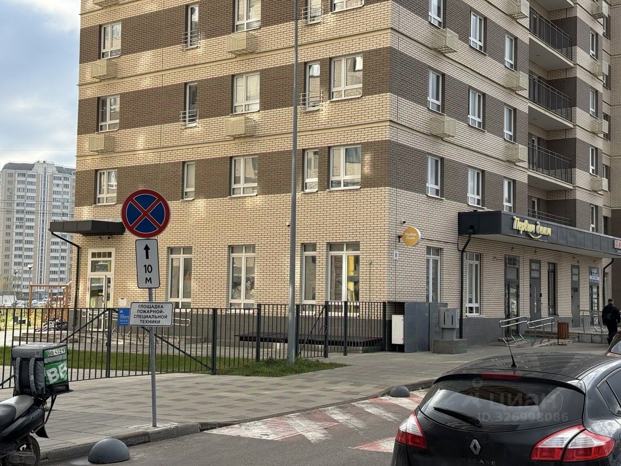 Фасад выходит на улицу, с интенсивным автомобильным трафиком. Рядом есть парковка.