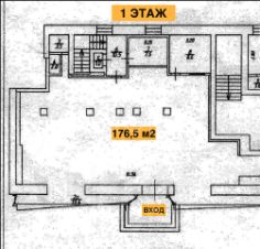 1-й этаж: 176,5 м2, подвал: 57 м2.
