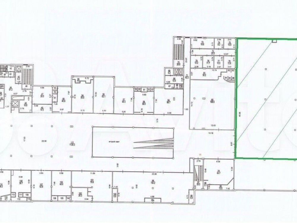 Общая площадь: 1 430 кв. м., 2 этаж. Отдельный вход с витринным остеклением.