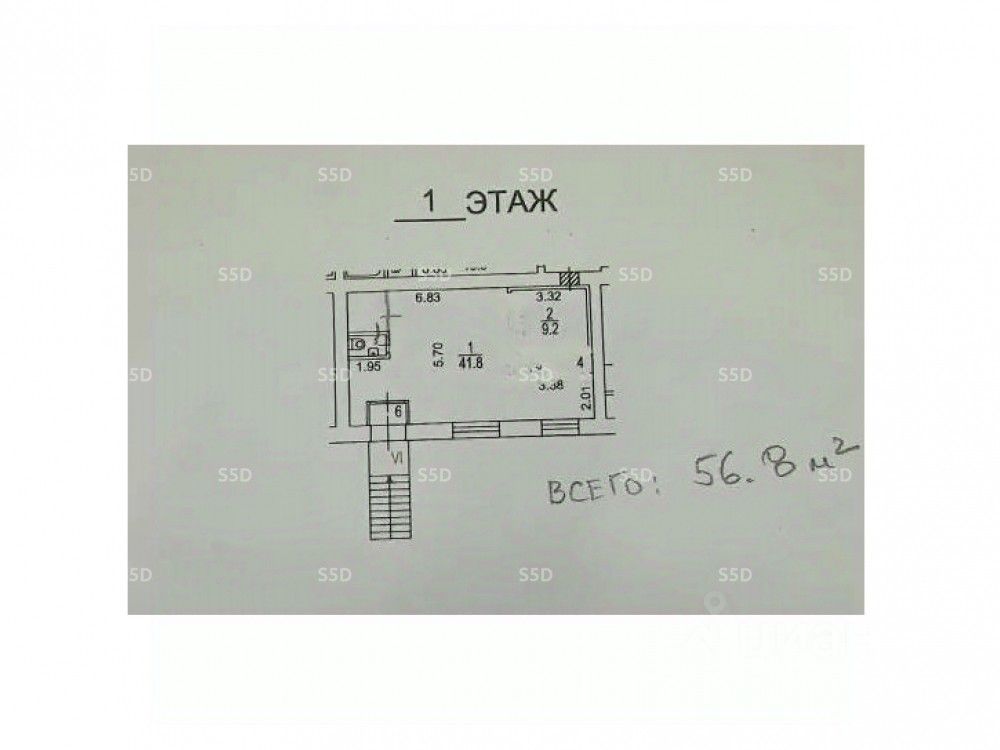 Общая площадь - 56,8 кв.м.