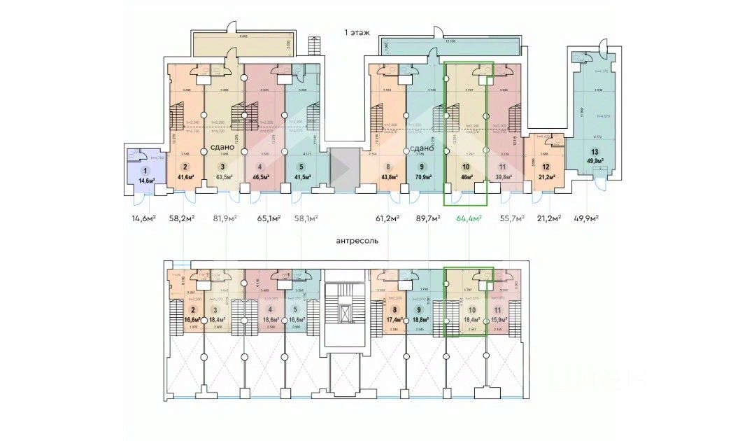 814241-s . Предлагаем торговое помещение, площадью 64,4 кв. м., расположенное на первом этаже и антресоли жилого дома.