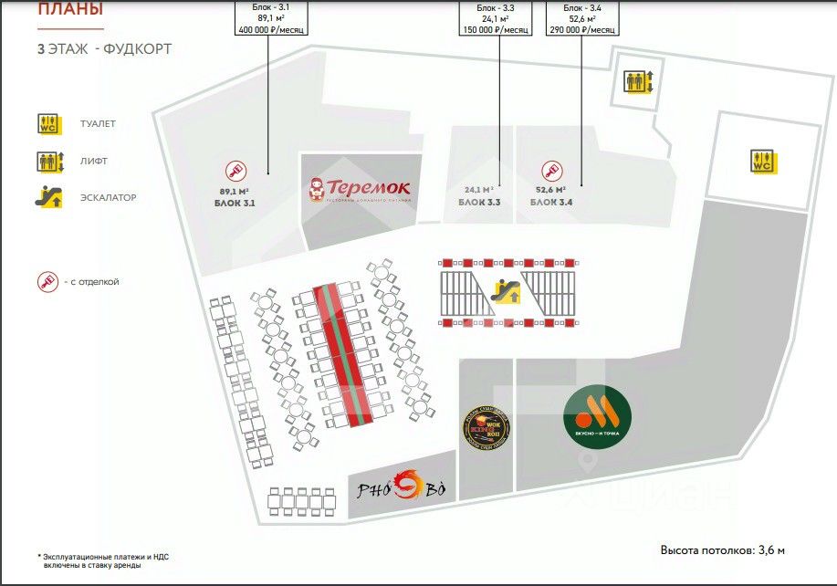 -высота потолков: 3.6 м.
