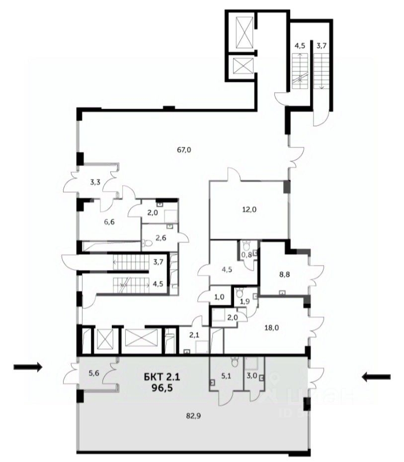 979964-s . Предлагаем помещение свободного назначения формата street-retail в ЖК "Sydney City", площадью 96.5 кв. м, расположенное на первом этаже 44 этажного жилого дома.