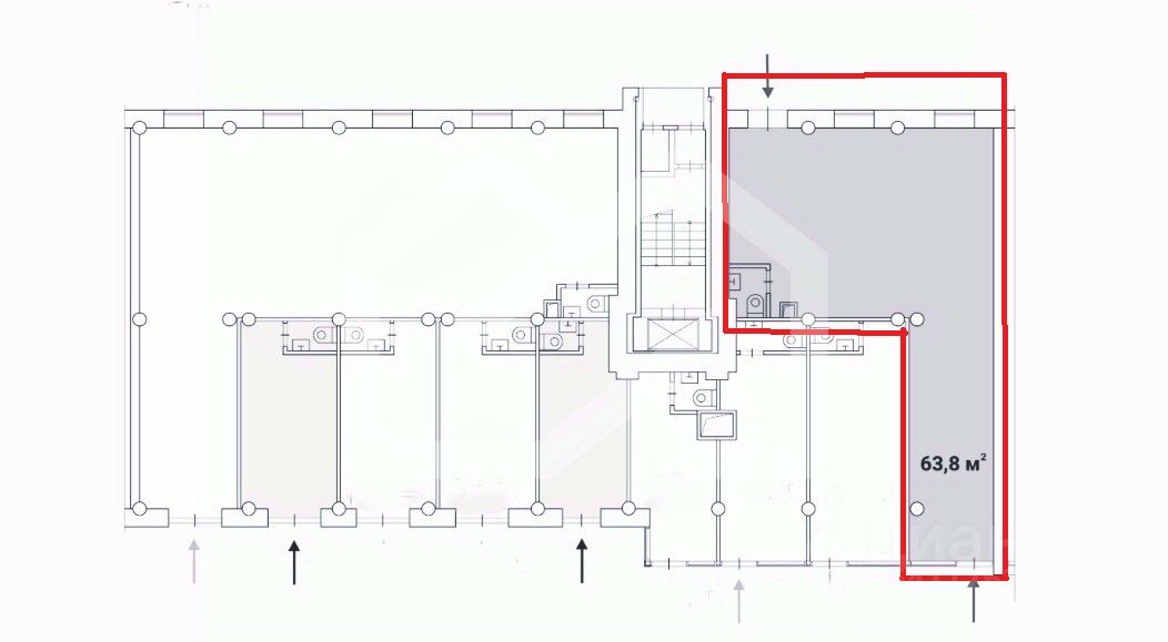 902141-s . Предлагаем помещение свободного назначения формата street-retail, площадью 63.8 кв. м, расположенное на первом этаже 9-этажного жилого дома.